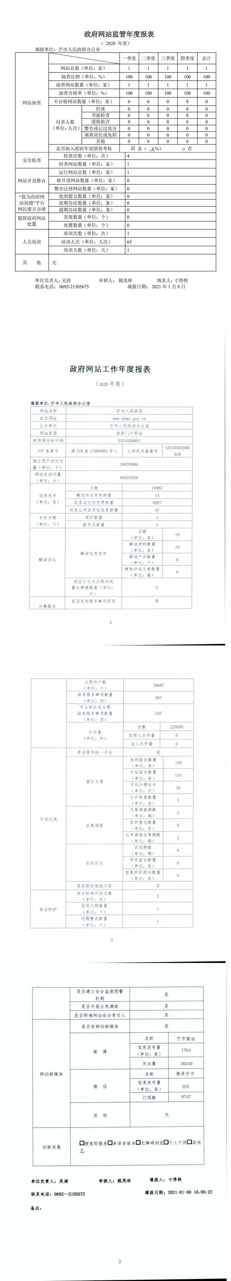 2020年度芒市《政府网站监管年度报表》《政府网站工作报表》
