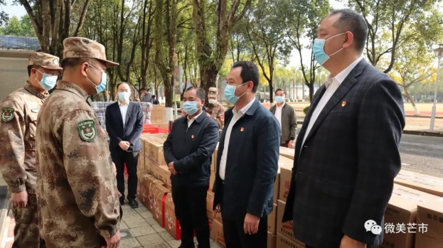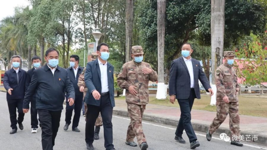 在解放军驻芒市某部队,市委书记谢金翔代表市四班子向全体官兵致以节日的亲切问候,感谢他们为地方经济发展和社会稳定作出的重要贡献。谢金翔表示,市委、市政府将一如既往地支持军队建设,做好部队的后勤服务保障。希望他们在新的一年里,继续发扬人民军队的优良传统,把驻地当故乡,视群众为亲人,在维护地方社会稳定、开展双拥共建、支援地方建设等方面再创佳绩。