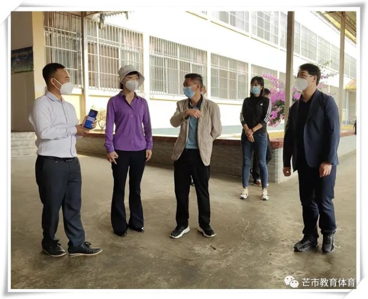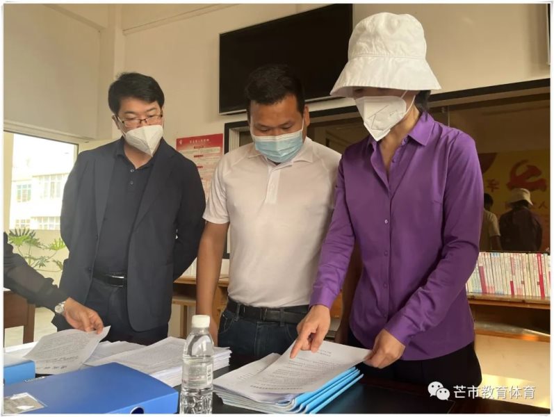 德宏州教体局局长李君川,芒市委常委、市人民政府副市长吕彬,芒市教体局局长冯鸾芳陪同检查。