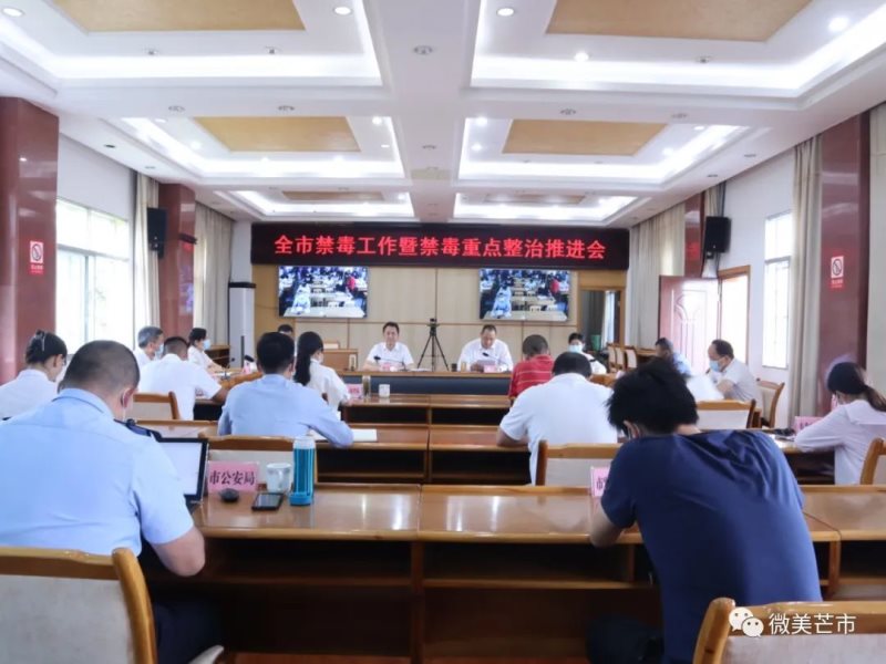 4月26日下午,芒市召开2022年全市禁毒工作暨禁毒重点整治推进会。全面总结我市2021年禁毒工作,深入分析当前面临的形势,动员部署2022年禁毒人民战争各项工作,并对禁毒重点整治工作进行再强调、再安排、再部署。市委书记谢金翔出席会议并讲话。会议由市委副书记、市长郑昭主持。