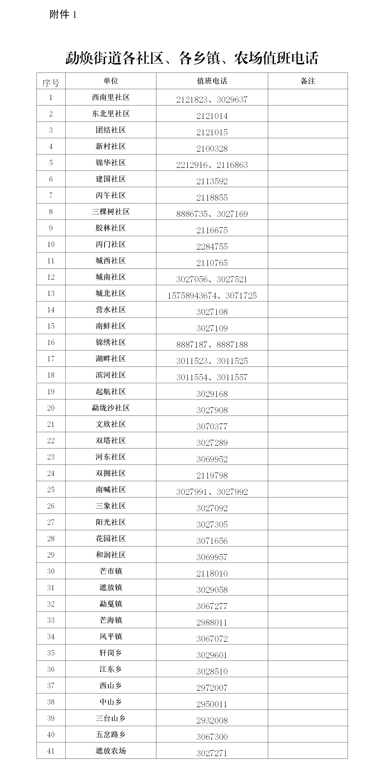 附件:1.勐焕街道各社区、各乡镇、农场值班电话