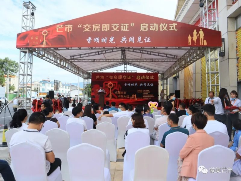 8月13日上午,芒市“交房即交证”启动仪式在芒市香颂时光项目部举行,现场部分业主代表欣喜地领到了新房钥匙和崭新的不动产权证书,成为芒市首批“交房即交证”新政策受益人。