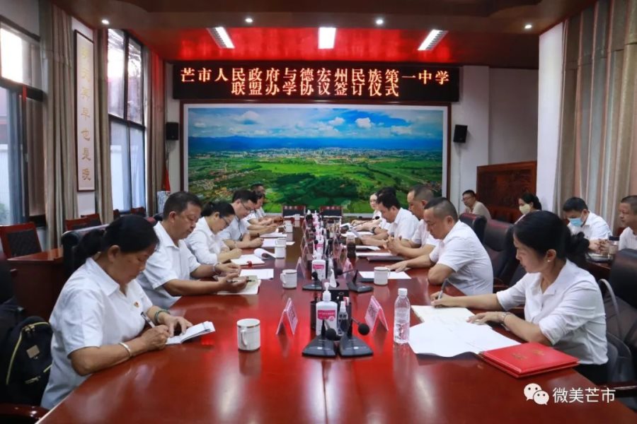 8月22日下午,芒市人民政府与德宏州民族第一中学联盟办学协议签订仪式在芒市举行。芒市委书记谢金翔出席签约仪式并讲话。市委副书记杨仕勇主持仪式。