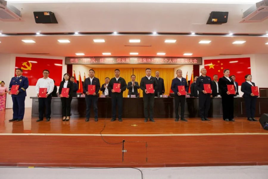 会议宣读了《中共芒市委、芒市人民政府关于表彰全市“转作风、提效能、促发展”先进集体和先进个人的决定》,并表彰了先进集体和先进个人,先进集体和先进个人代表进行了交流发言。