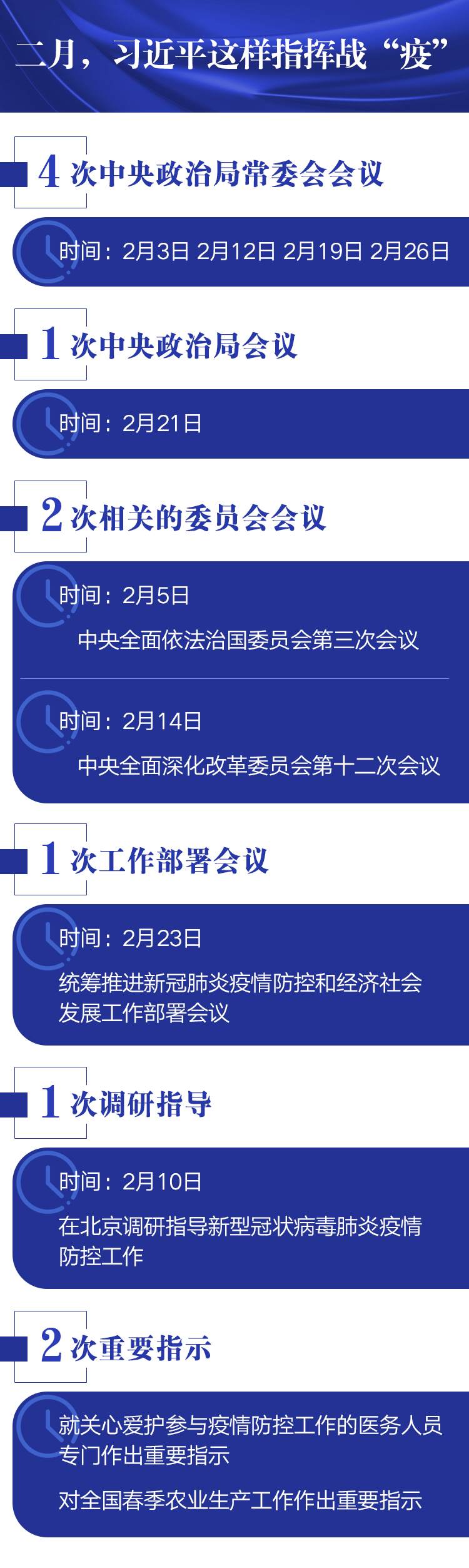 多次主持中央政治局常委会会议、前往疫情防控一线调研指导、连续展开“电话外交”……围绕战“疫”,习近平的二月活动凸显了非常时期的“非常”关切。