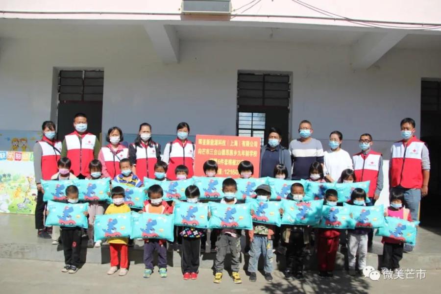自党史学习教育开展以来,芒市红十字会积极开展“我为群众办实事”实践活动,助学路上,与市教育体育局紧密配合,积极与上海青浦区红十字会对接沟通,共同做好博爱助学工作。近期,得到了上海青浦区红十字会和上海青浦小白杨公益服务中心的大力支持,晖崟新能源科技(上海)有限公司通过上海青浦区红十字会定向向芒市三台山德昂族乡九年制学校捐赠6件套棉被共32套,总价值:12160元,本次捐赠由芒市红十字会来执行。2021年11月9日,芒市红十字会将晖崟新能源科技(上海)有限公司捐赠的物资送到三台山德昂族乡九年制学校学前班小朋友手中,并举行了捐赠仪式。芒市红十字会常务副会长杨华连表示,将会积极把博爱救助与教育帮扶相挂钩,不断整合相应资源,同乡镇党委政府、学校形成合力,促进我市教育事业发展。