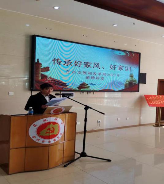 家是最小国,国是千万家。家庭和睦则社会安定,家庭幸福则社会祥和,家庭文明则社会文明。习近平总书记多次提到“注重家庭、注重家教、注重家风”,饱含着对广大家庭的关怀与厚望。为传承良好家风,12月30日芒市发展和改革局组织开展“传承好家风 好家训”道德讲堂,活动由芒市发展和改革局副局长董雁主持。