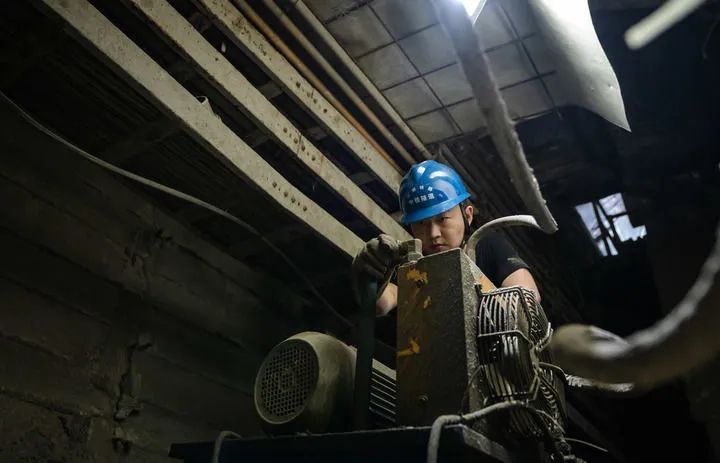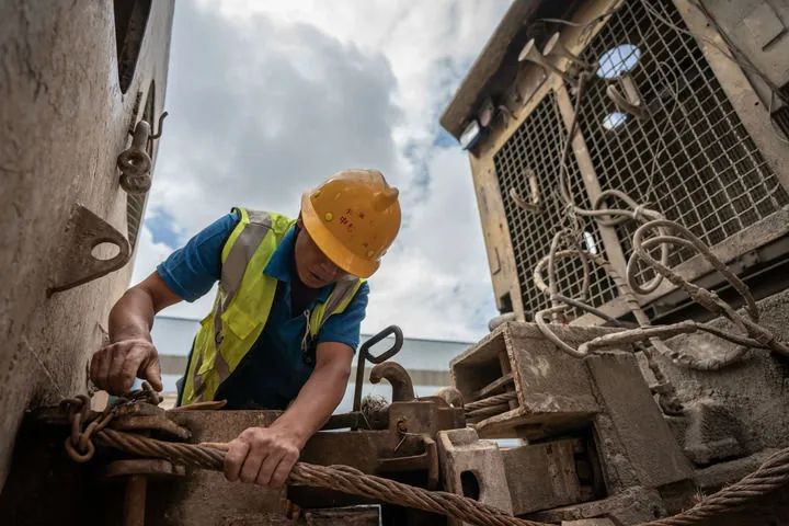 8月4日,高黎贡山隧道施工人员在施工现场检查轨道车连接处。新华社记者 王冠森 摄