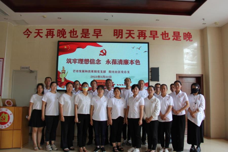 为进一步落实全面从严治党主体责任,教育引导党员干部提高政治判断力、政治领悟力、政治执行力,筑牢廉洁自律思想防线,强化纪法意识,5月23日下午,芒市人民政府发展和改革局党支部联合阳光社区党总支开展了“筑牢理想信念,永葆清廉本色”主题党日活动。
