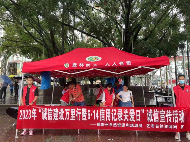 为进一步拓展信用知识宣传的深度和广度,着力提升社会诚信意识,以信用建设助力营商环境优化,根据德宏州社会信用体系建设部门联席会议办公室安排和芒市社会信用体系建设部门联席会议办公室制定的方案,州市成员单位于6月14日早上在芒市街心花园认真开展了2023年“诚信建设万里行暨6·14信用记录关爱日”诚信主题宣传活动。