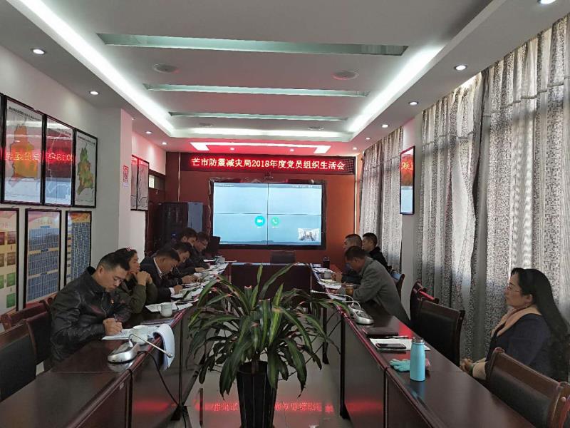 1月28日早上,芒市防震减灾局党支部召开2018年度组织生活会暨民主评议党员大会。会议由党支部书记金小三主持,局领导班子成员以普通党员身份参加会议。