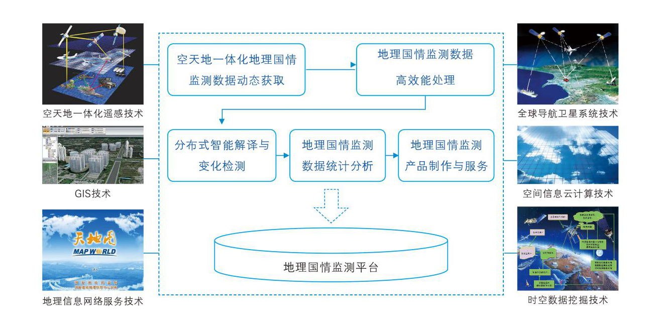 第一次全国地理国情普查完成后, 按照国务院对地理国情监测工作常态化的要求,2016年起,中心负责基础性地理国情监测的组织实施工作,制订基础性监测技术方案、内容指标、工艺流程,健全监测规范标准和产品服务体系。历年来取得的成果已在“多规合一”、城市规划实施监管、环境保护与治理、自然资源管理、空间用途管制等多个方面得到应用,在生态文明制度建设中发挥了不可或缺的作用。