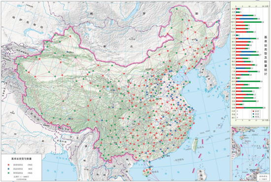 全国范围内建设360个国家GNSS连续运行基准站,形成国家大地基准框架的主体,维持国家三维地心坐标框架。其中新建基准站150个,改造站60个,利用站150个。