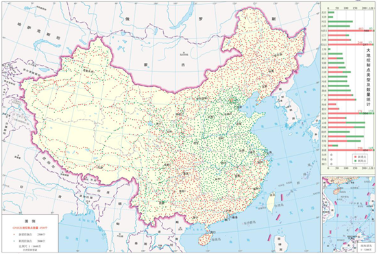 全国范围内建设4508个国家GNSS大地控制点,形成分布相对均匀,覆盖整个国土,具有较高覆盖密度的基础设施,实现我国大地基准的有效传递,满足基本控制测量的需要。其中新建2508点,利用2000点。