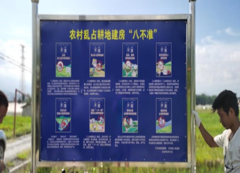 会议前期,通过发放农村乱占耕地建房“八不准”宣传小册1180份、宣传画报119份、宣传资料1200余份、重点区域设立警示牌5块,村组会议、入户等多种形式进行相关土地清理政策法规宣传。