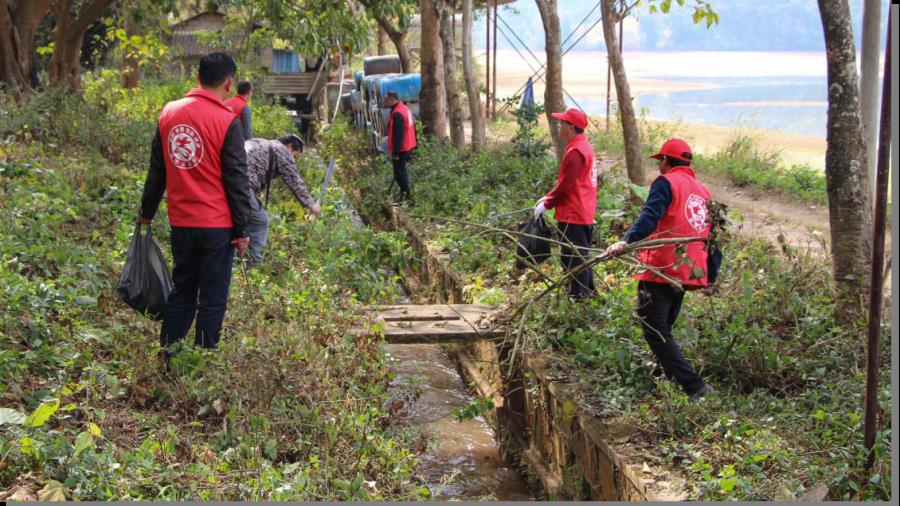 8日下午,根据巡查排查情况,我局组织各股室、中心干部20余人分两队分别到芒市大河和那目水库责任区开展清理整治行动,清理现场,大家干劲十足,既分工明确,又互相配合,采取刀砍、锄挖、手捡等方式扎实开展清理工作。经过清理,有效净化了河道两侧和水库周围的障碍物,消除了地面可见白色垃圾,大大提升了河湖生态环境。