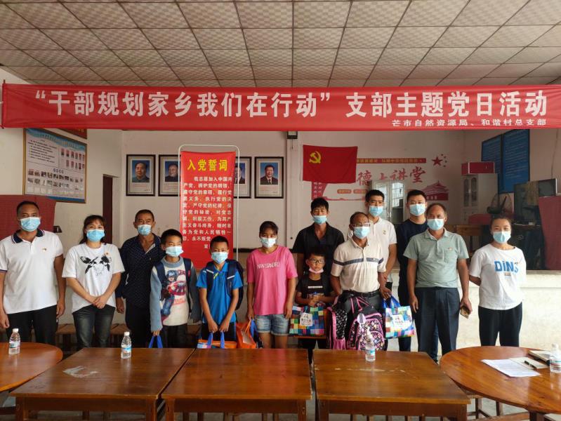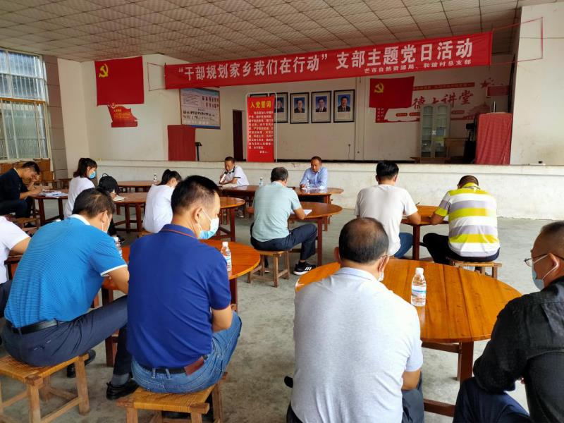 2021年8月20日,芒市自然资源局、芒市轩岗乡和谐村总支部联合开展主题党日活动。活动以党史学习教育为主线,围绕“干部规划家乡我们在行动”的主题,以丰富多样的形式,让在场的全体党员接受了一次党味浓、接地气、重实效的组织生活洗礼。