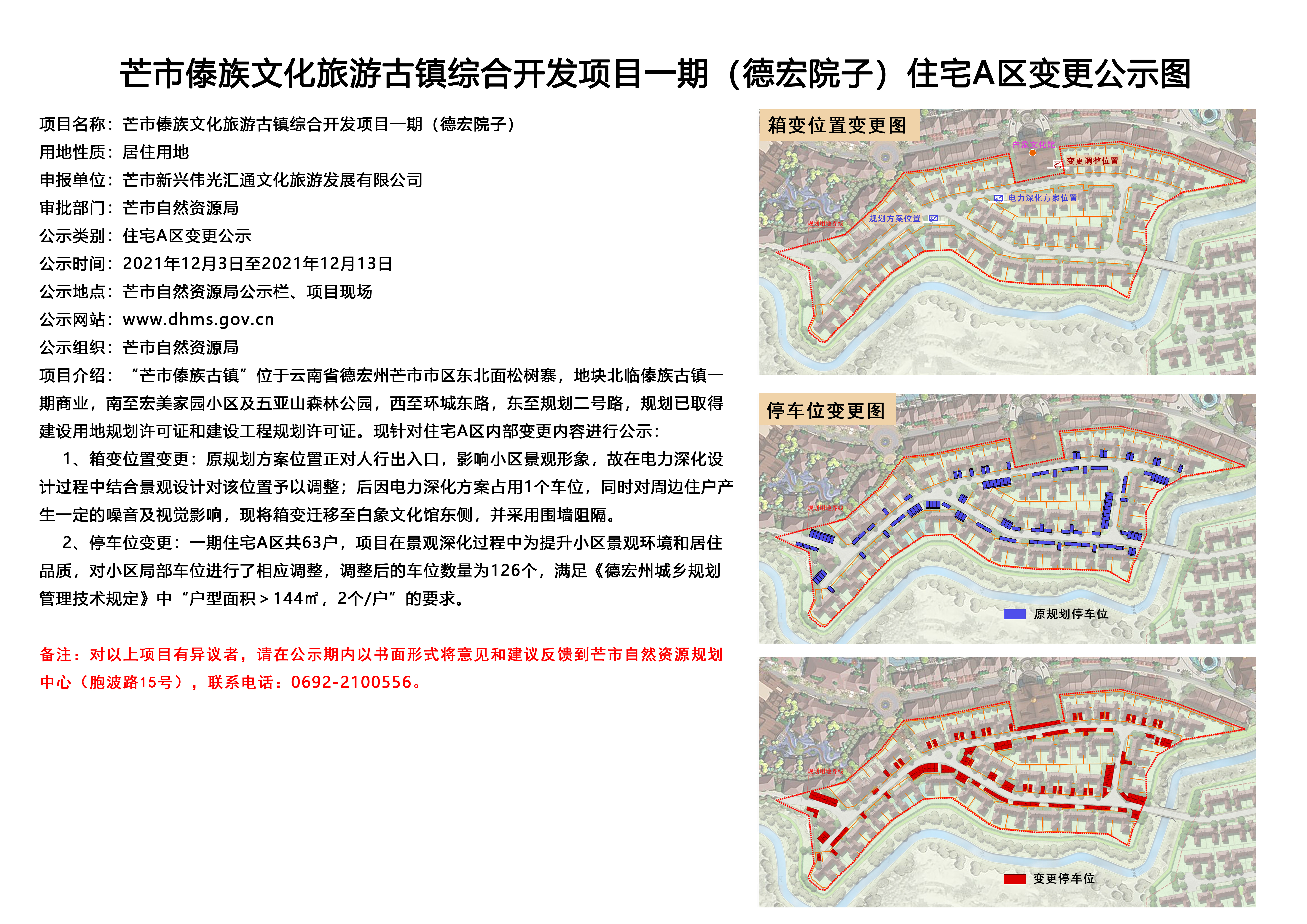 芒市傣族文化旅游古镇综合开发项目一期(德宏院子)住宅A区变更公示图2021.12.03-2021.12.13