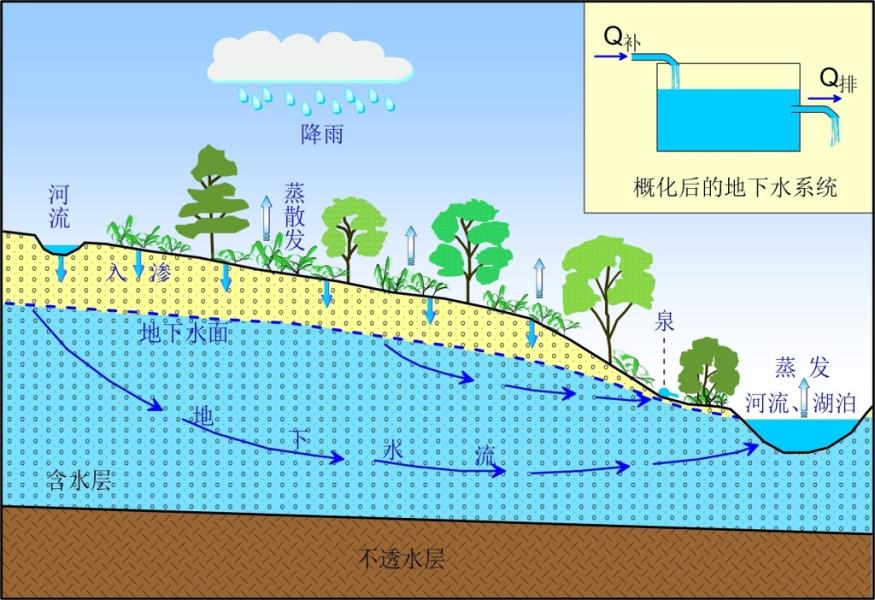 “黄河之水天上来”,一语道破水循环的起源。天然条件下,降水通过各种途径入渗补给地下成为地下水,在重力驱动下向下游流动、排泄,在循环流动中实现动态平衡,维系着山水林田湖草生命共同体的健康发展。