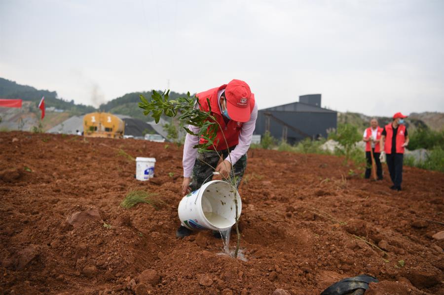 植树添绿,让党员“动”起来--全体党员来到矿山裸露区,一起挥锹铲土、扶树正苗、培土,栽下一棵棵树苗,积极投身矿山生态修复行动,共建绿色家园。迎着党旗,伴着汗水,一株株小树苗随风招展,空旷的山坡展现出勃勃生机。