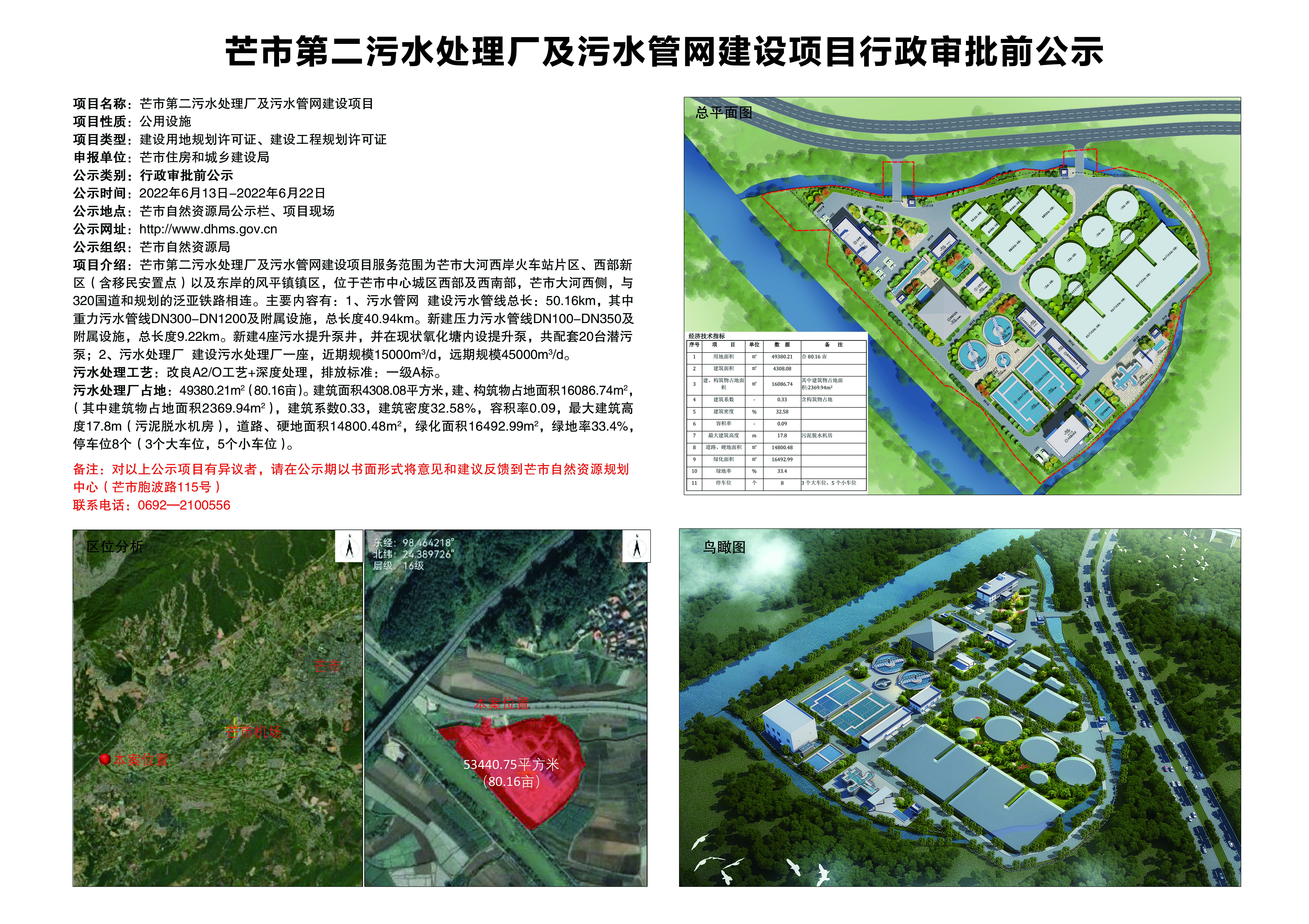 芒市第二污水处理厂及污水管网建设项目行政审批前公示2022.6.13-2022.6.22