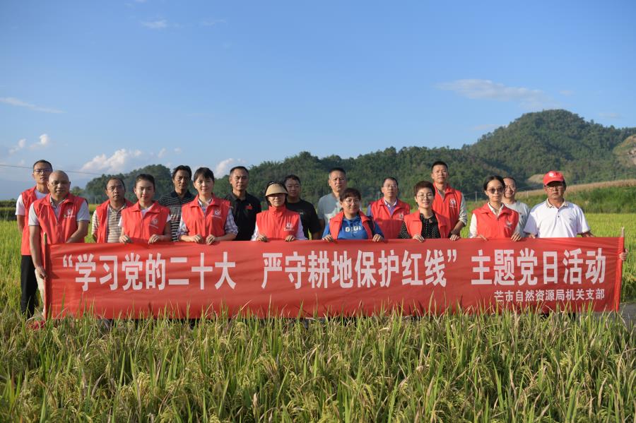 为深入贯彻党的二十大精神,聚焦主责主业,勇担职责使命,提升新时代耕地保护工作水平。10月27日,芒市自然资源局机关第一、第二党支部全体党员和青年理论学习小组成员到勐戛镇芒丙国土综合整治项目区开展“学习党的二十大 严守耕地保护红线”主题党日活动。