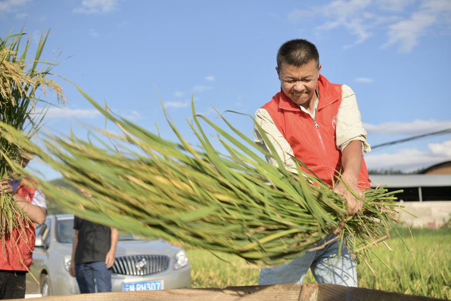 金灿灿的稻田里,沉甸甸的稻子压弯了腰,一片丰收的喜人景象,党员们顶着炎炎烈日,手持镰刀,或娴熟、或生涩地忙碌着。大家挥洒汗水,分工协作,有的割、有的运、有的打谷,有条不紊地收割着稻谷。“以前从没干过农活,我觉得今天这个主题党日过得特别有意义,让我体会到了劳动的艰辛和快乐。同时,也看到了我们实施的国土综合整治项目让农民获得了实实在在的收益。”看着自己的劳动成果,青年党员刀承娇激动地说道。