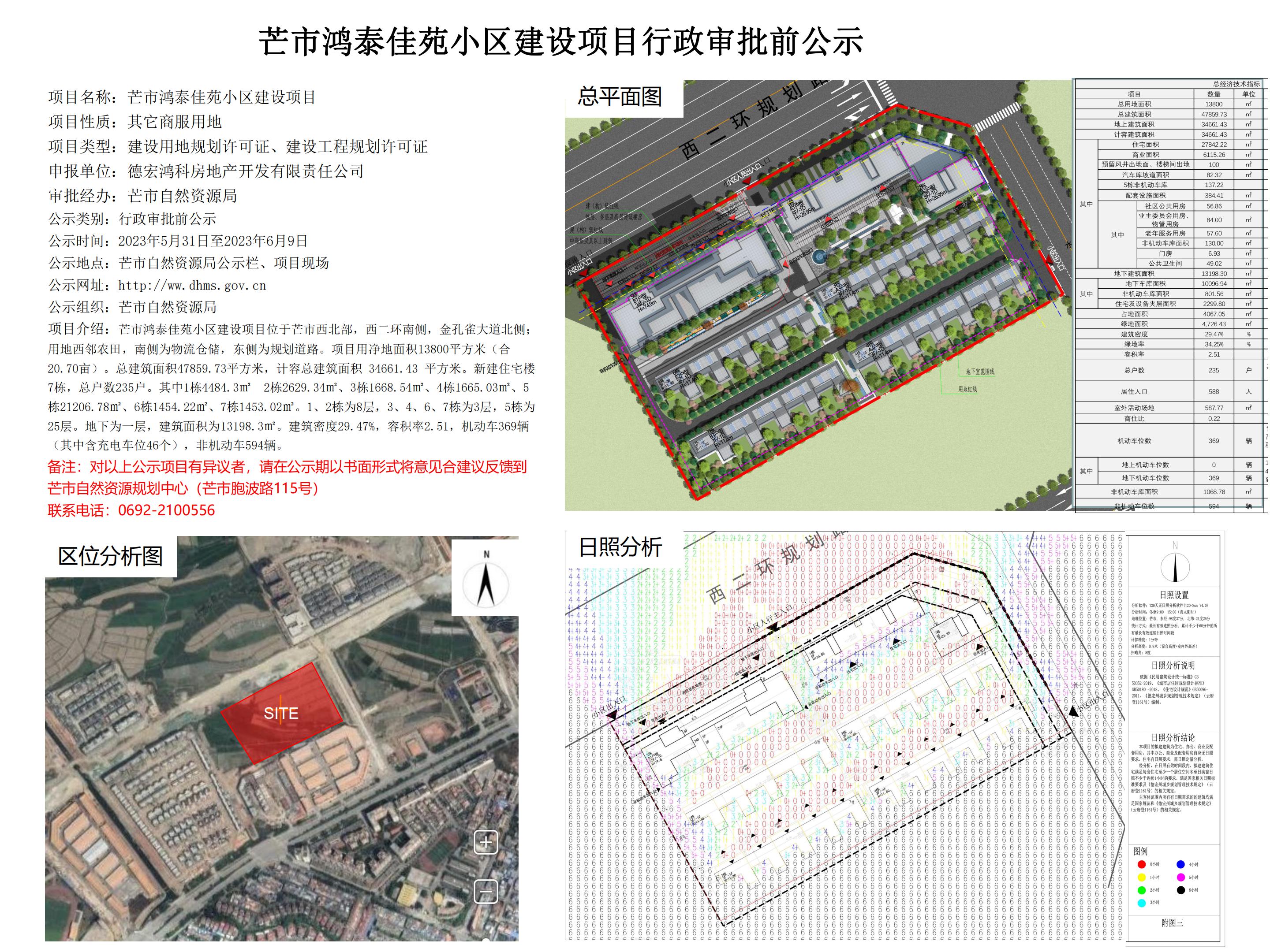 芒市鸿泰佳苑小区建设项目行政审批前公示2023.05.31-2023.06.09