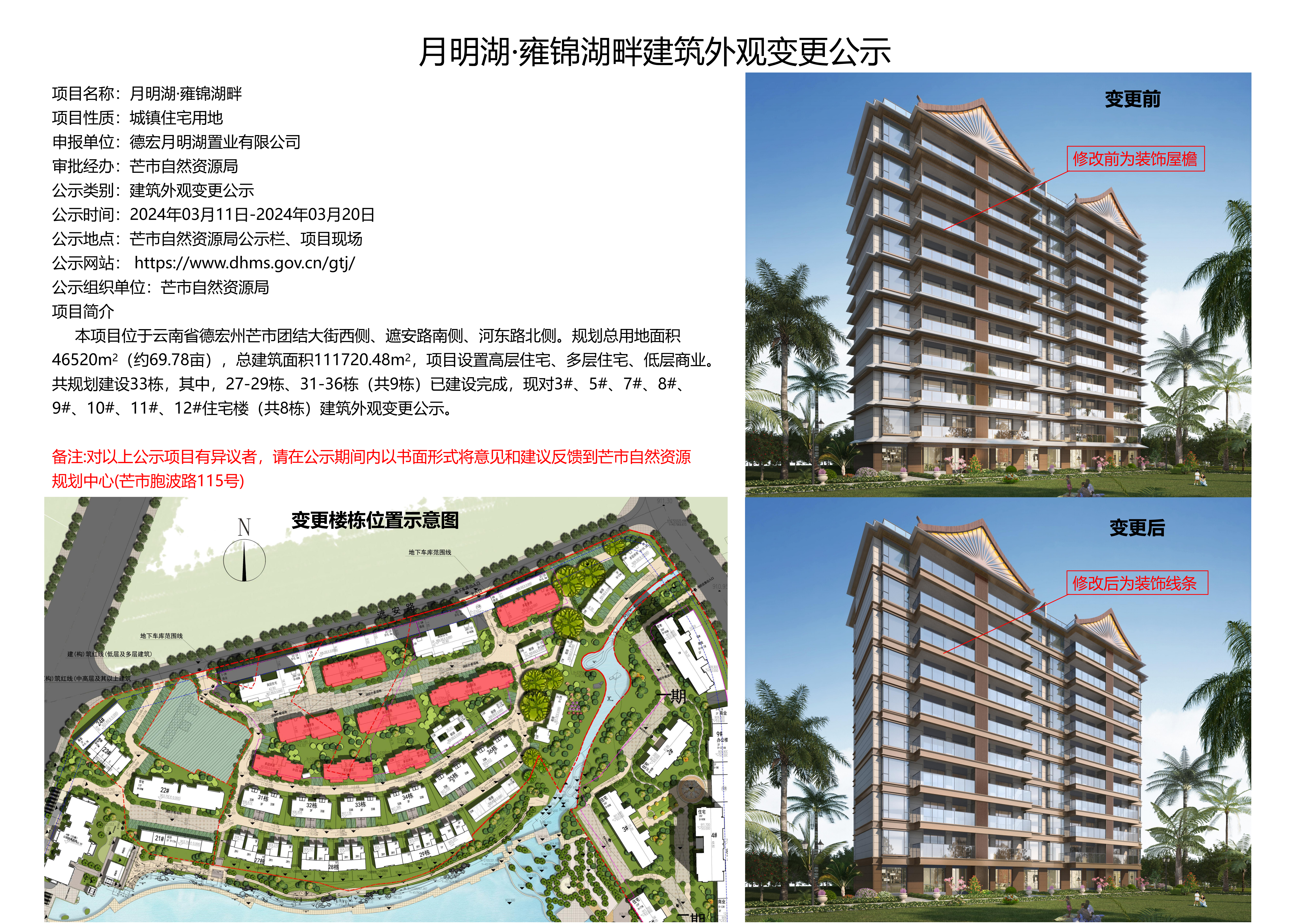 月明湖·雍锦湖畔建筑外观变更公示2024.03.11-2024.03.20
