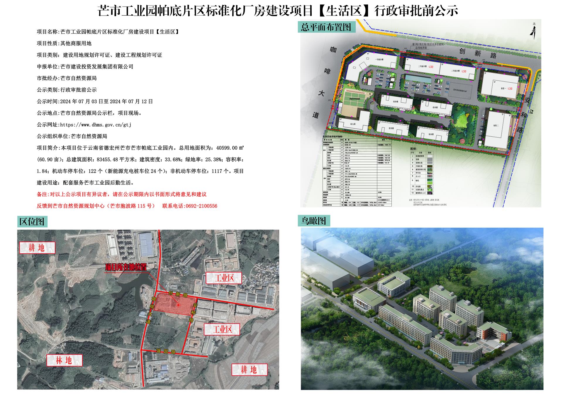 芒市工业园帕底片区标准化厂房建设项目【生活区】行政审批前公示2024.07.03-2024.07.12