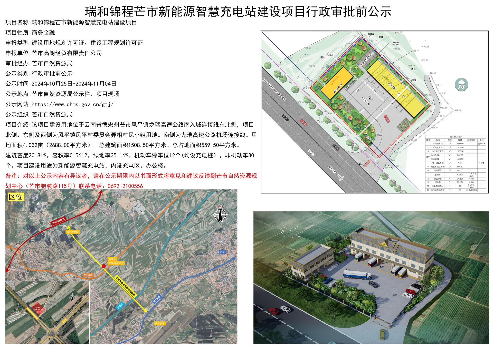 瑞和锦程芒市新能源智慧充电站建设项目行政审批前公示2024.10.25-2024.11.04