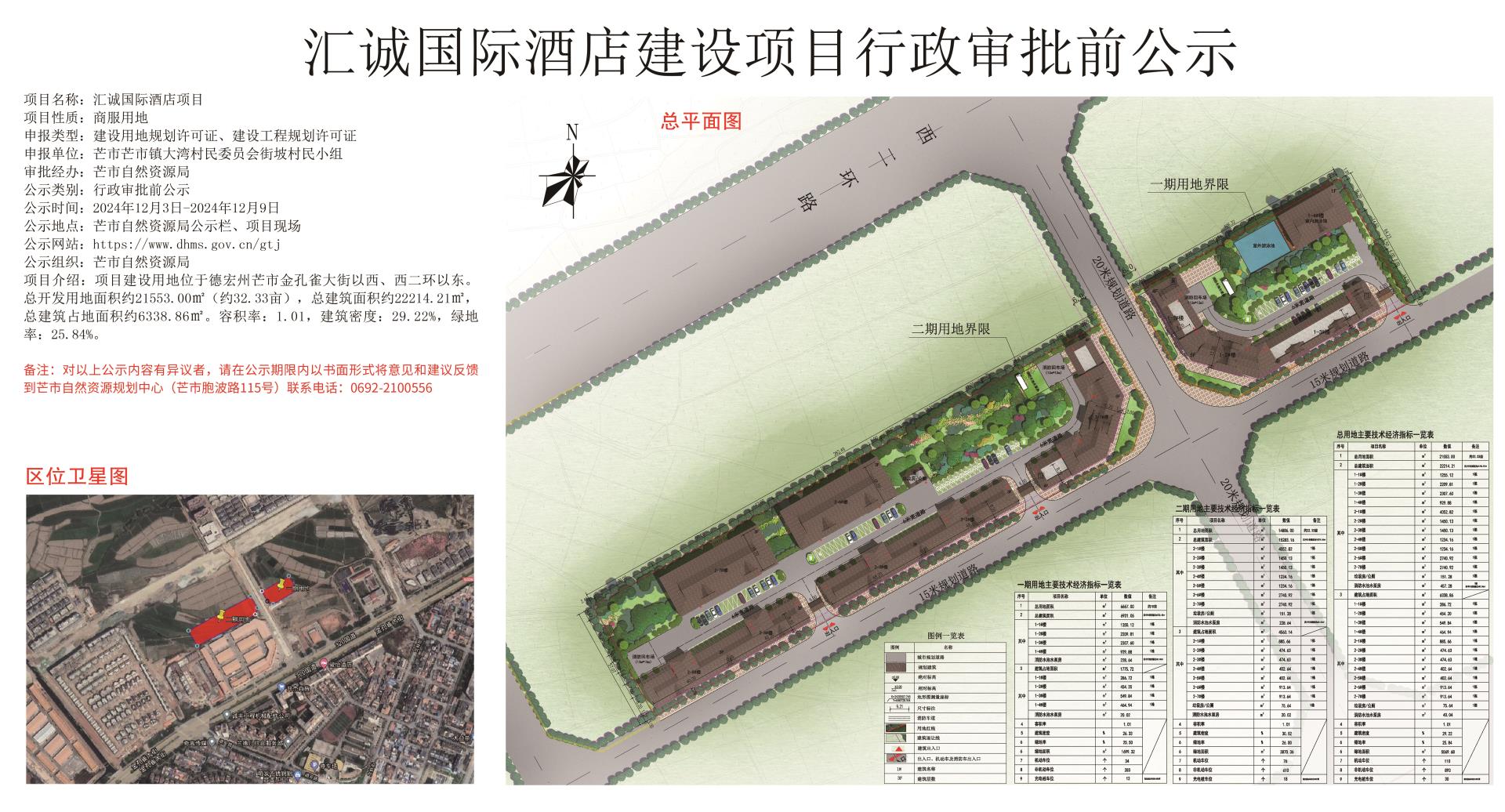 汇诚国际酒店建设项目行政审批前公示2024.12.3-2024.12.9