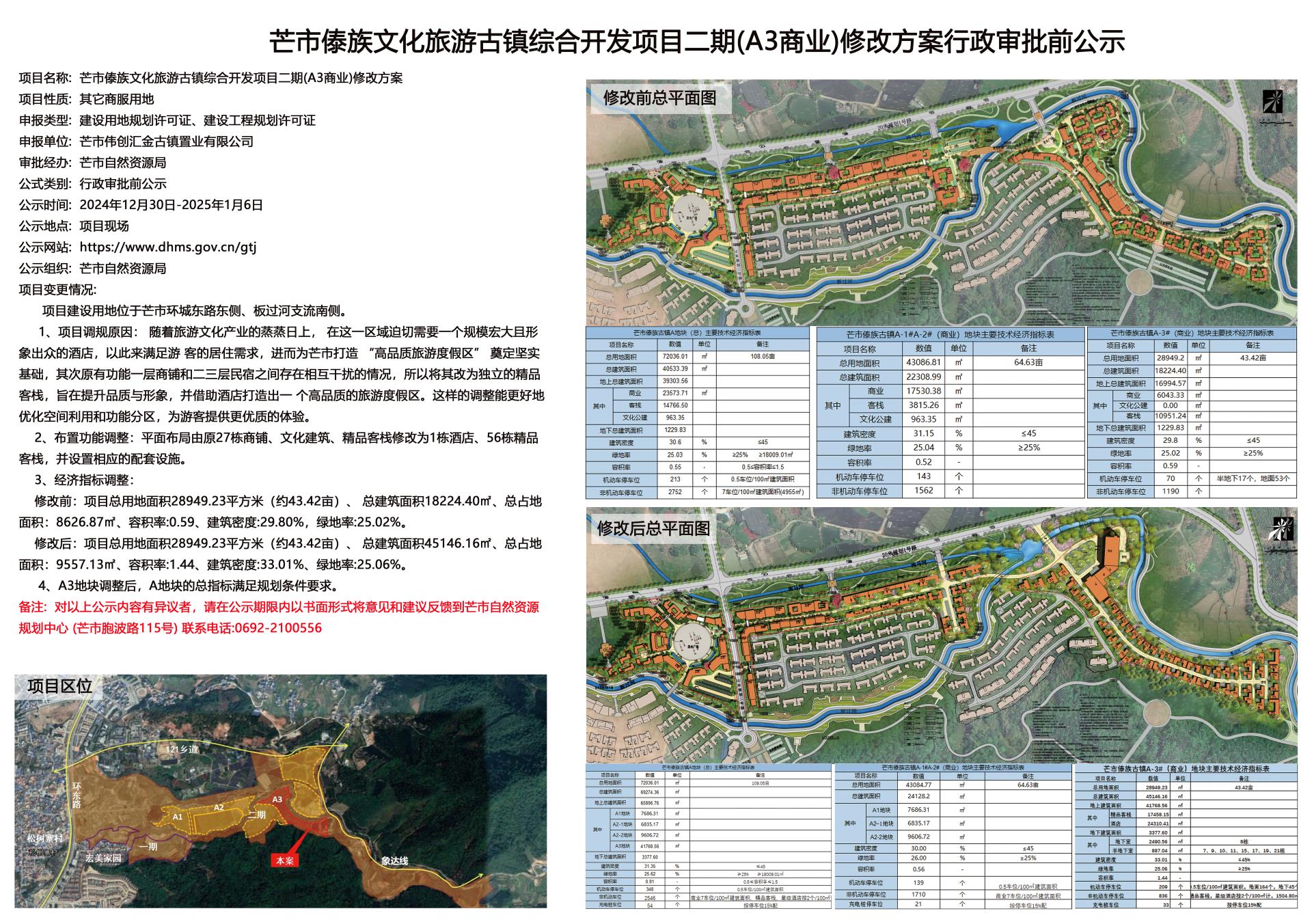 芒市傣族文化旅游古镇综合开发项目二期(A3商业)修改方案行政审批前公示2024.12.30-2025.01.06