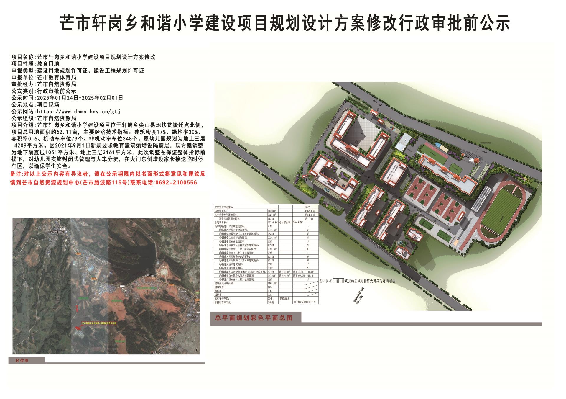 芒市轩岗乡和谐小学建设项目规划设计方案修改行政审批前公示2025.01.24-2025.02.01