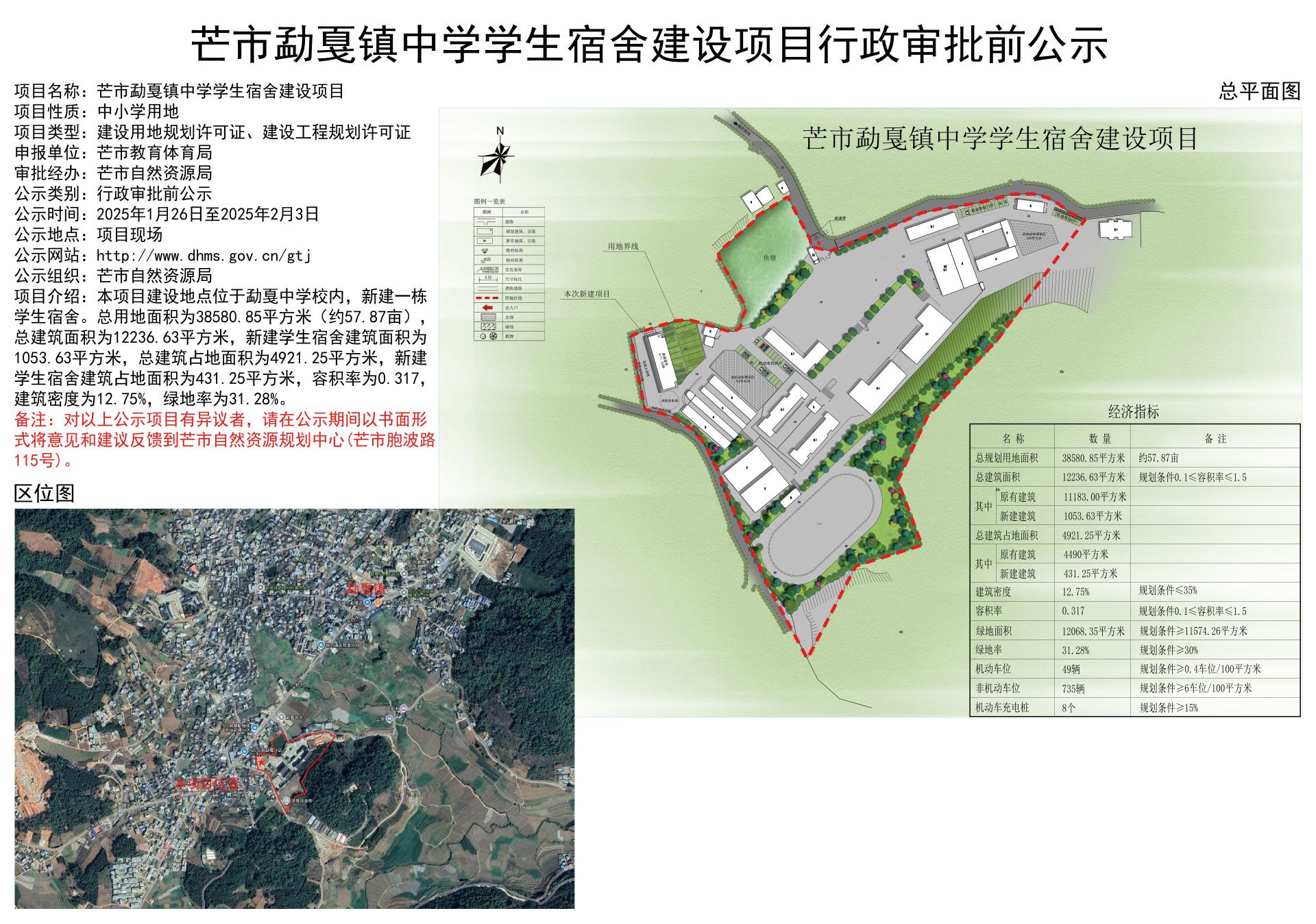 芒市勐戛镇中学学生宿舍建设项目行政审批前公示2025.01.26-2025.02.03