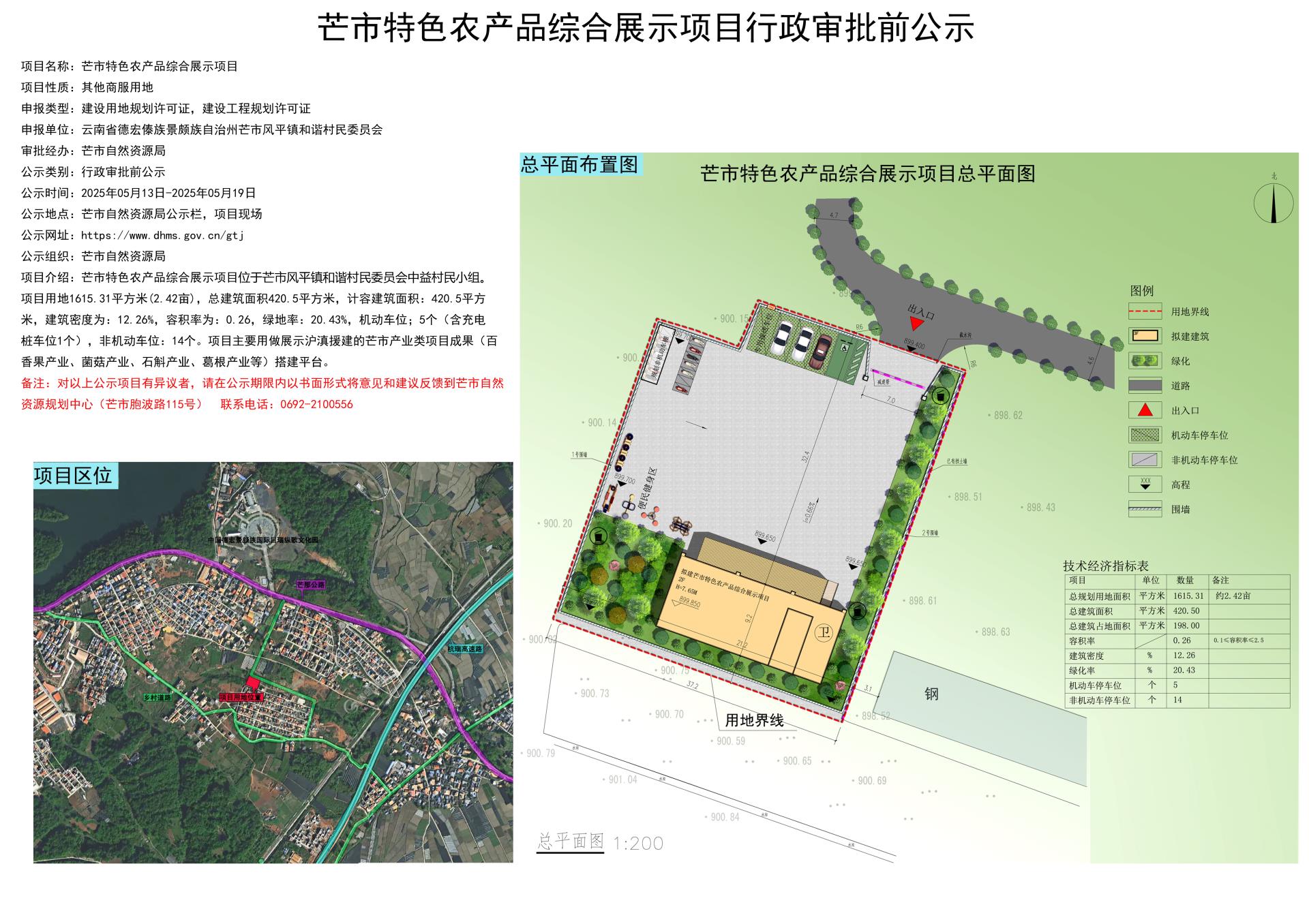 芒市特色农产品综合展示项目行政审批前公示2025.5.13-2025.5.19