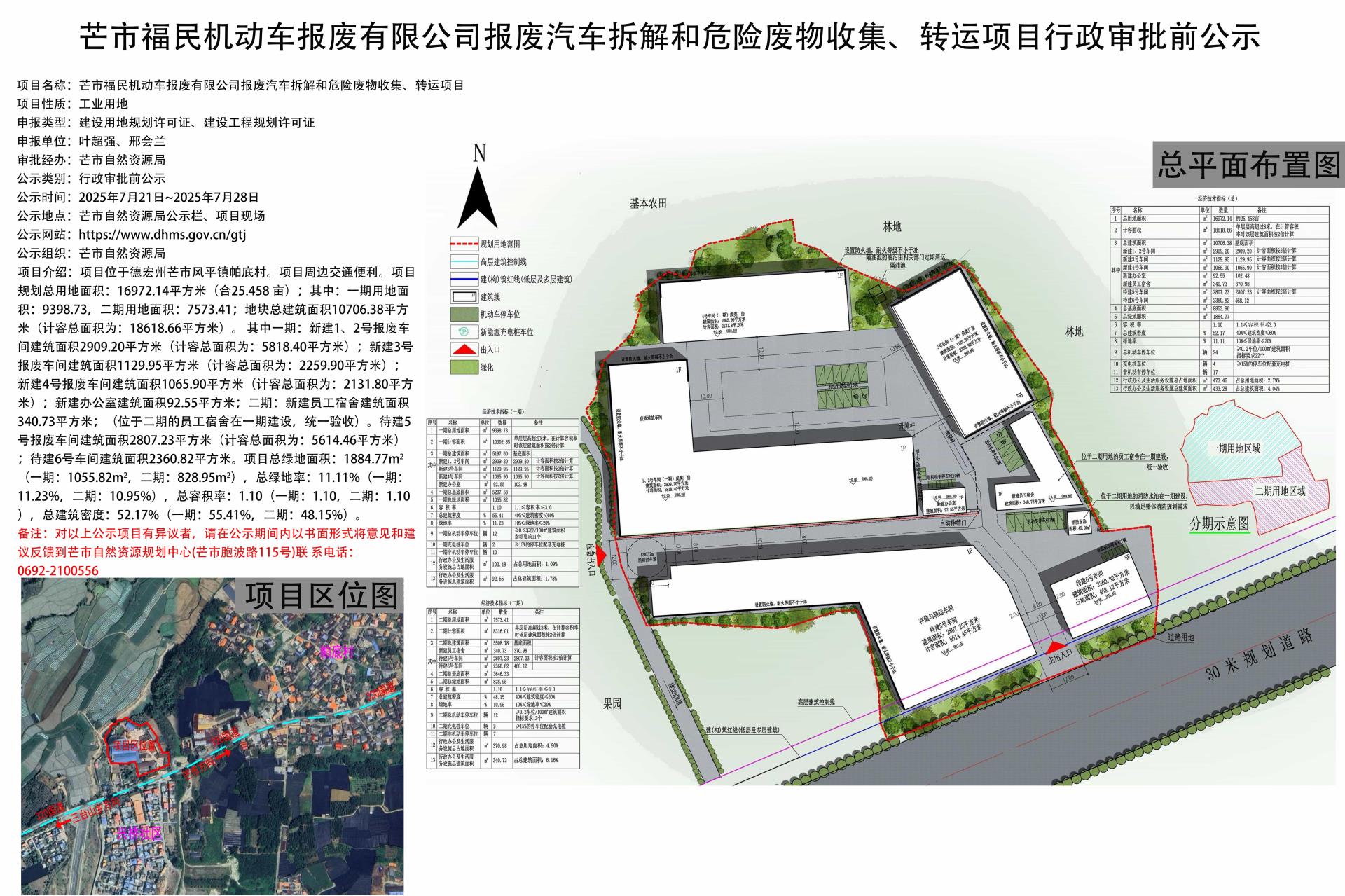 芒市福民机动车报废有限公司报废汽车拆解和危险废物收集、转运项目行政审批前公示2025.7.21-2025.7.28