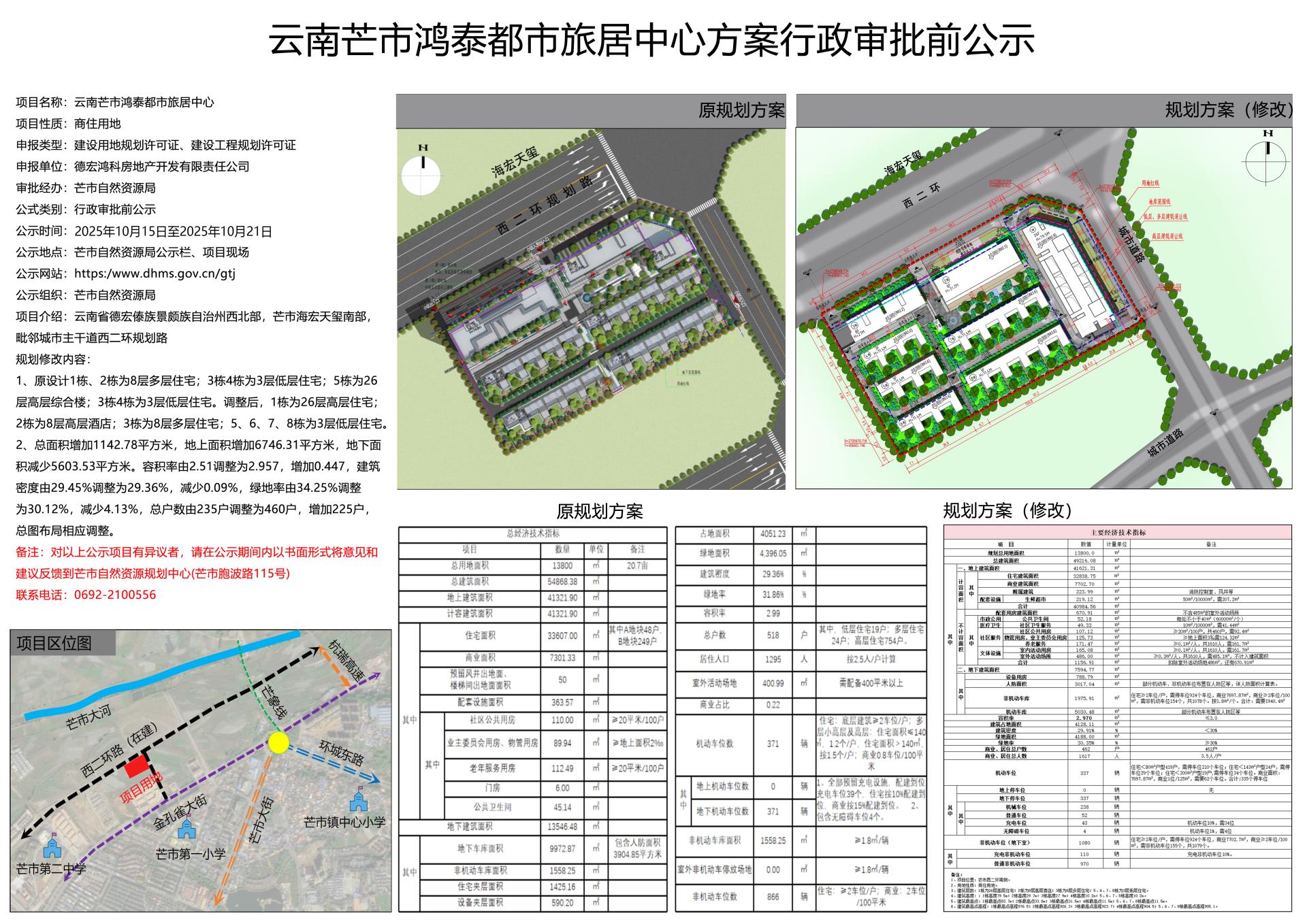云南芒市鸿泰都市旅居中心方案行政审批前公示2025.10.15-2025.10.21