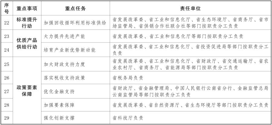 18.有序推进再制造和梯次利用。大力引进培育装备再制造企业,鼓励对具备条件的废旧生产设备进行再制造。深入推进汽车零部件、工程机械、机床等传统设备再制造,探索风电光伏、动力电池等产品设备及关键部件梯次利用。支持中国(云南)自由贸易试验区昆明、红河、德宏片区争取国家重点行业再制造产品进口试点。