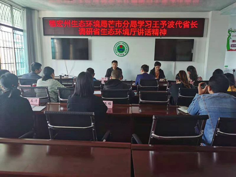 2020年12月3日下午,德宏州生态环境局芒市分局组织全体干部职工传达学习王予波代省长调研省生态环境厅讲话精神。会上,革新局长全面传达王予波代省长讲话内容和省生态环境厅党组书记、厅长岳修虎在2020年11月30日召开全省生态环境系统贯彻落实省政府主要领导重要讲话精神视频会议上的讲话要求。