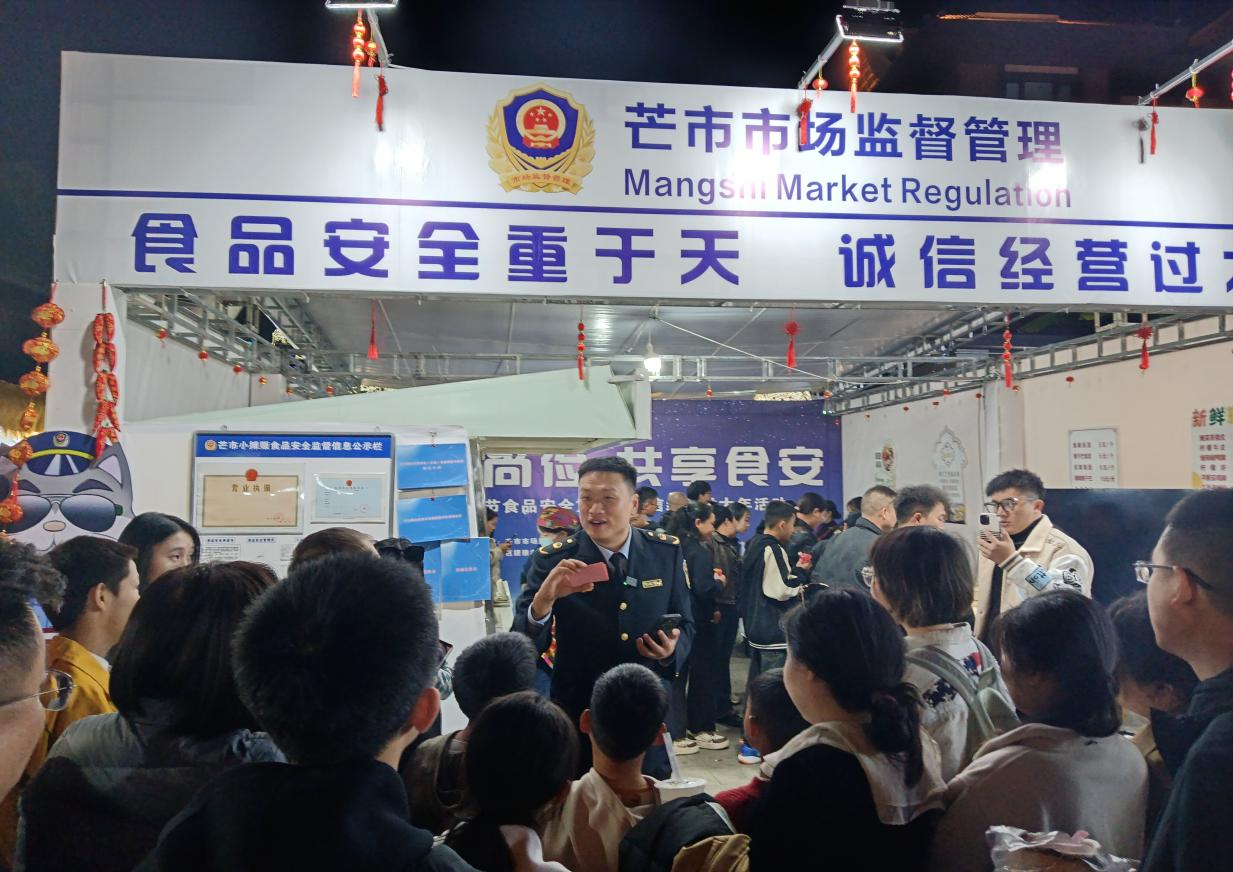 活动中工作人员对规范性的经营进行了一一的讲解,还设置了食品安全宣传台发放宣传材料、食品安全知识问答等互动环节,市民、游客朋友们都争先恐后的抢答赢取礼品,热闹非凡,让更多的外地朋友了解和认识当地的特色小吃的同时,也了解了食品安全方面的知识,更是促进了地方美食文化的传播和交流。芒市市场监督管理局对此次活动进行了抖音直播,共有观看人数22.5万人,直播间在线人数20444人,评论754条,点赞5.7万。