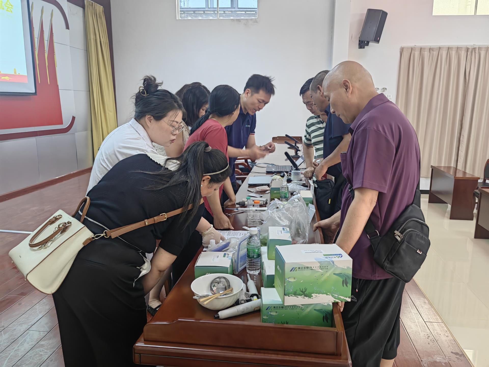紧接着,快速检测操作教学环节,将理论知识转化为实践技能。针对蔬菜、肉类、餐饮具等重点检测项目,开展从样本的正确采集方法、检测试剂的精确配制,到快检设备的规范操作流程以及检测结果的全流程的现场实操教学。参会人员认真观摩后,纷纷上手实操,在技术人员的耐心指导下,逐步掌握了各项快检操作的要点和技巧。