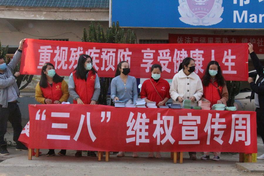 为进一步强化维权服务,倡导妇女学法提素质,家庭平安促和谐理念,进一步传递党对妇女群众的温暖关怀,勐戛妇联联合镇司法所、团委、工会等组织开展了“三八”维权周普法宣传活动,给我辖区广大妇女干部过一个特别的“三八”节。