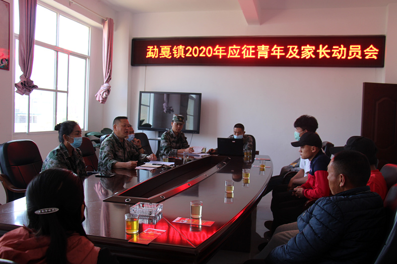 2020年4月14日,勐戛镇组织召开2020年春季应征青年及家长动员会,学习传达省、州、市征兵工作有关要求,加强对今年春季秋季征兵工作的领导,推进征兵任务圆满完成。市人武部、市征兵办相关领导及应征青年、家长代表参会,会议由镇党委委员、武装部部长康成喜同志主持。