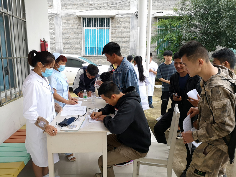 对应征青年进行体检初检,初检项目包括:身高、体重、视力、血压、外科、内科、五官科等。