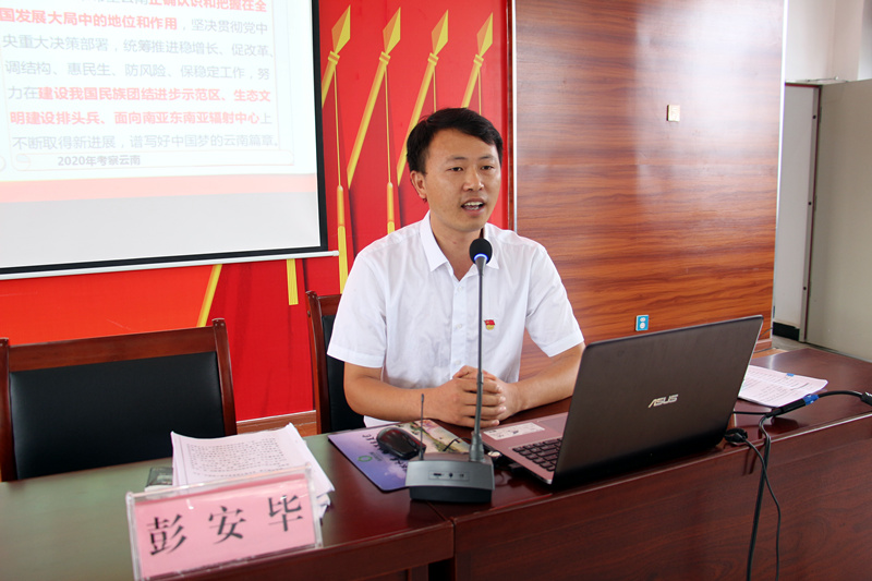 为深入贯彻落实习近平总书记考察云南重要讲话精神,进一步引导全镇党员干部树立一盘棋思想,补足全镇党员干部“精神之钙”。2020年8月6日,勐戛镇开展习近平总书记考察云南重要讲话精神宣讲活动,镇党政班子成员、各村“两委”及村务监督主任、全镇干部职工及市属驻勐戛各单位负责人共计40余人参加。