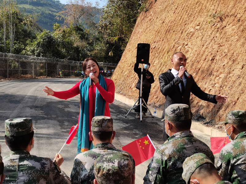 2021年1月15日,这是一个特殊的日子,芒市文艺进边境迎春送福“三下乡”活动第三站,来到勐戛镇岗房梁子疫情防控点,人群随着朝阳一起在勐戛镇的边境疫情防控执勤点上热闹了起来,为驻守在勐戛镇4.5公里边境一线的执勤人员送去新年的慰问和祝福。