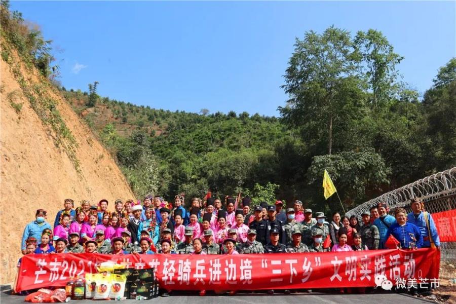 2月14日,农历大年初三,芒市“文艺进边境迎春送福三下乡”第二批系列活动来到勐戛镇八道河一号执勤点,为守边一线人员送上新春的祝福和热情昂扬的文艺表演。本次活动由芒市阿昌学会为主力。