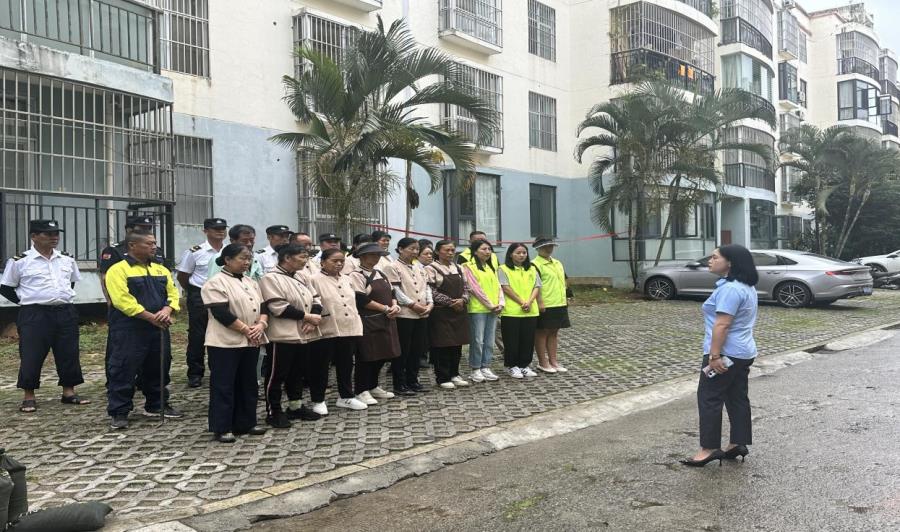 工作人员向参加演练人员说明了此次活动的目的是增强社区及物业安保人员的防汛意识和应急处置能力、提高居民对防汛知识的了解和自救互救能力,降低洪水灾害对社区的影响,并强调了演练过程的注意事项及参加演练人员自身安全。演练开始后,社区防汛应急队伍迅速集结,按照预案进行布置。首先,对社区内的排水设施进行检查和清理,确保排水畅通;随后,模拟暴雨导致积水严重,社区启动应急响应机制,组织居民进行疏散。在疏散过程中,应急队伍指导居民正确使用防汛物资,确保人员安全撤离。