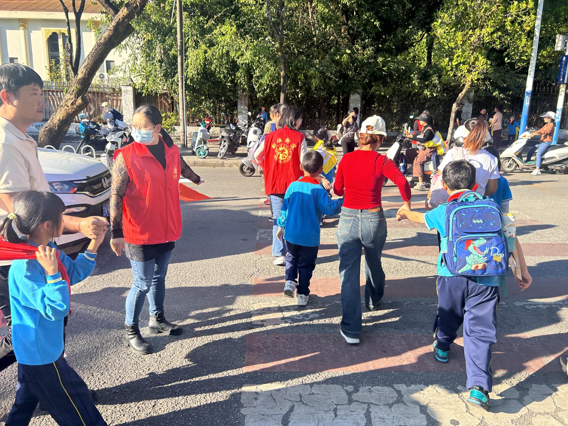 同时,社区志愿者们两两一对驻守在交通路口进行文明交通引导。组织小朋友们有序通过斑马线,引导行人注意交通安全、有序通过路口;引导车辆避让,对行人横穿马路和机动车不礼让行人等各种不文明交通行为进行劝导,倡导共同维护良好的交通秩序。